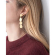 Pendiente acero dorado de cierre presión con cuatro lágrimas con efecto espejo. Tienen un largo de 6,5cm.