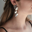 Pendiente acero plateado de cierre presión con un largo de 7,5cm. Joya en forma de cascada de hojas, con un diseño ligero y dinámico que aporta movimiento y estilo.