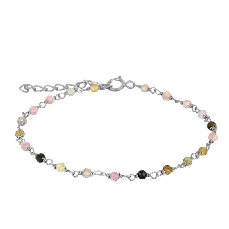 Pulsera de 15cms. graduable hasta 18cms., con cadena rosario de turmalinas intercaladas. Disponible en Plata de Ley 925 y en Baño de Oro 18kts.
