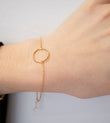 Pulsera acero dorado de 16,5cm. extensible a 18cm. con un aro central de 1,4cm. de diámetro externo.