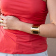 Brazalete acero dorado liso de forma irregular con 5cm. en su parte más ancha.