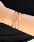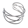 Brazalete acero plateado de 2,5cm. de ancho con tres líneas cruzadas por dos. Ajustable.